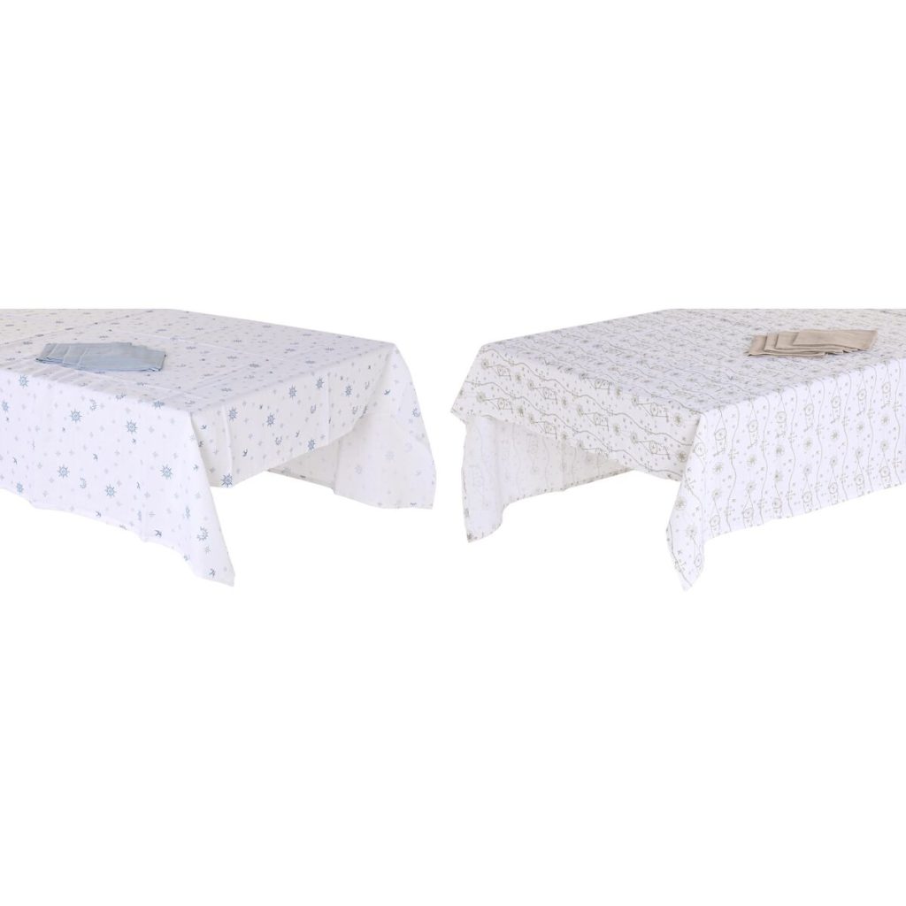 Nappe et serviettes de table DKD Home Decor 150 x 250 x 0,5 cm Bleu Marron Blanc (2 Unit?s)