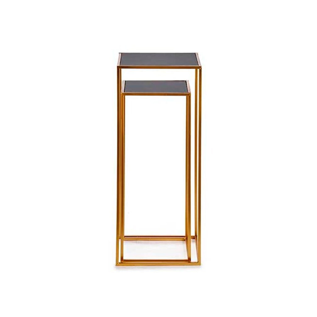 Table d’appoint Noir Dor? Verre M?tal (2 Pi?ces)